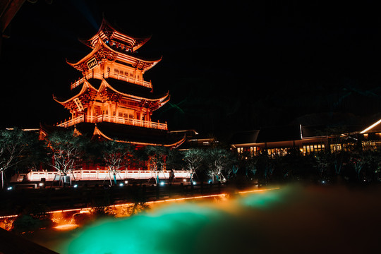 江西 夜游新地标:葛仙村度假区的夜景一绝
