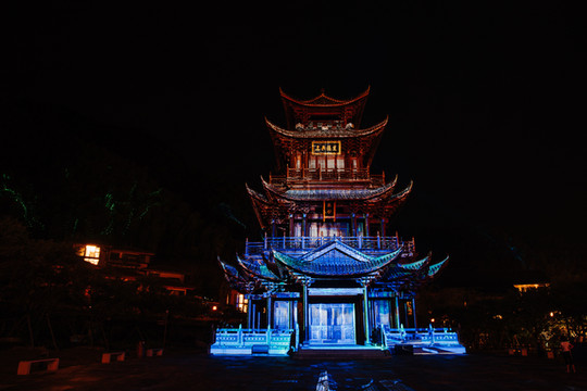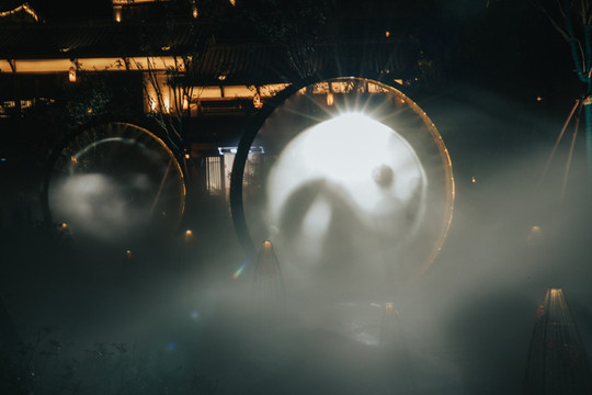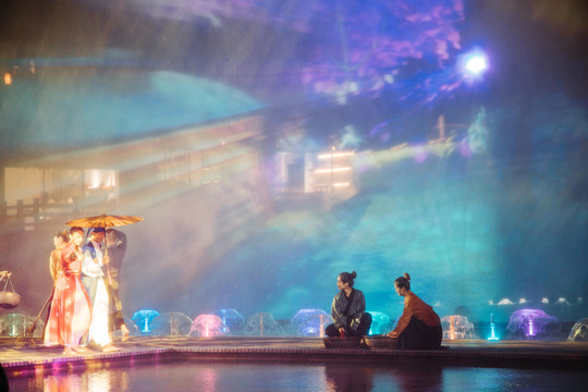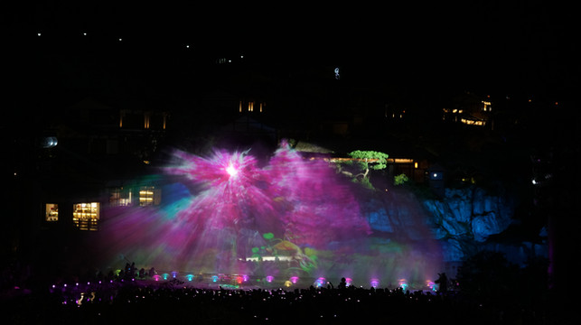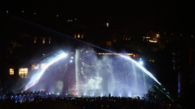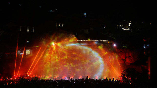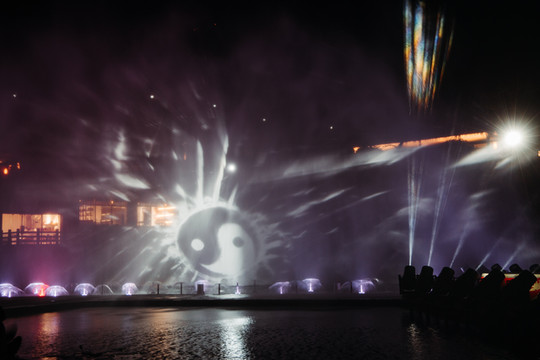 众妙阁灯光秀后每晚8点20分就是 大型实景水幕电影《归真纪》的演出啦!