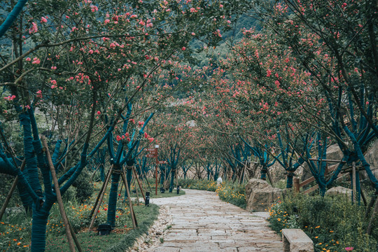 一幢幢风格古朴的屋舍,依山势高低起伏而建,错落有致、古韵悠悠,再加上青石板铺就的石阶小路,游走其间,颇有穿越历史的感觉。