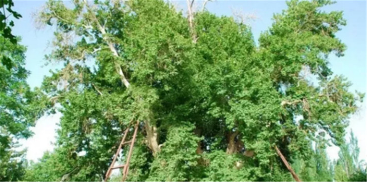 梧桐树王位于和田地区墨玉县阿克萨拉依乡古勒巴格村,树高约30米,主干胸径2.7米,主干胸围8.75米,树冠遮盖地面1.5亩,据传树龄已有千年左右。虽是千年古树,但枝繁叶茂,浓荫蔽日。由于古树的神秘身世,人们还一直把她视为"圣树"。