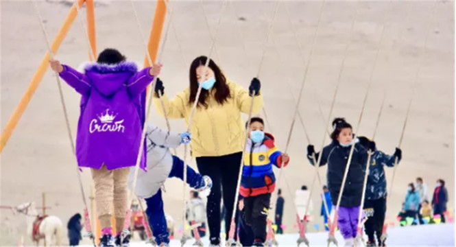 在戏雪乐园里网体验红秋千、网红桥、雪地摩托...
