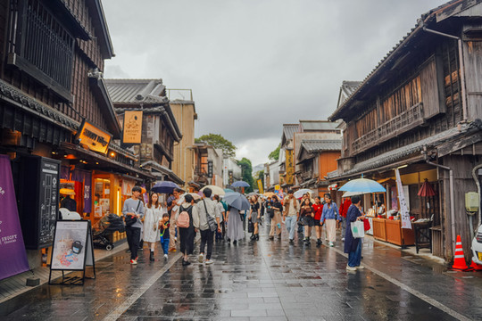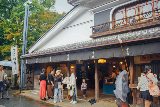 游览完伊势神宫内宫,出来后沿着古色古香的石板路,便来到了门前町——御祓町,这里售卖着各式各样别具特色的美食、工艺品,每一家店铺里都有惊喜。
