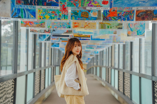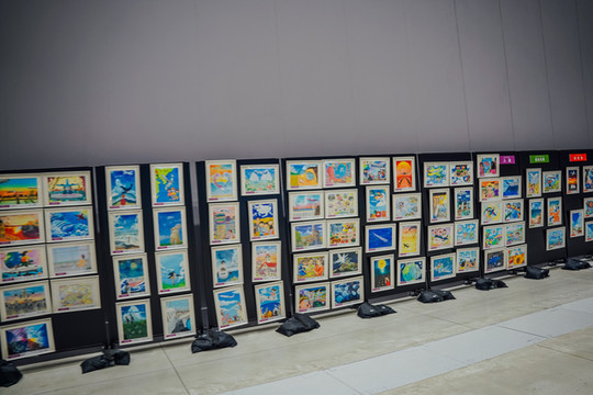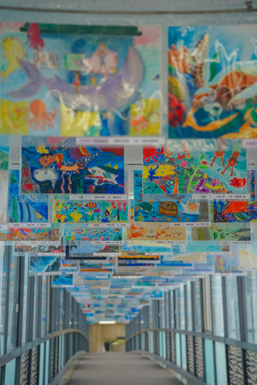 这条长廊里悬挂了许许多多的绘画作品,孩子们用童真的笔触描绘着他们眼中的御木本真珠岛以及珍珠捕捞制作的过程,非常有爱。