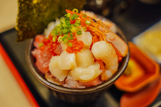 商场内的美食也很多,晚餐地点便选在了商场内的渔港饭家 牧原鲜鱼店。这里的招牌海鲜盖饭,食材非常新鲜,分量也很足,又是卡路里爆棚的一天!