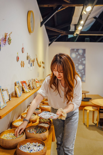 让君君最为震撼的是世界瓷砖博物馆展馆,这里收集展示了千余件极具代表性的瓷砖,很是壮观。在这里,君君还体验了一回“贴瓷砖”,挑选了秋天代表色彩的小瓷砖制作了一个相框,作为此次寻秋之旅的纪念品,好好珍藏。