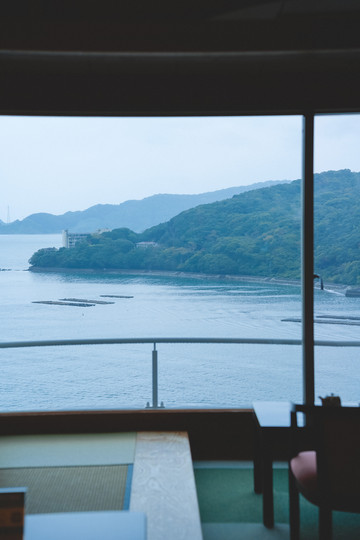 首先是进入房间的那一刻,看这窗外水墨画一般的景色,若不是定睛瞧见海面上的船只往来,还以为是一副风景装饰画。