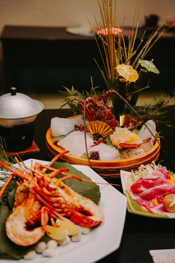 在鸟羽海滨酒店餐厅的日式包厢内,可以安安静静享用伊势龙虾大餐,享受伊势龙虾各种烹饪方法带来的不同味蕾体验。