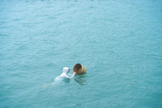 御木本真珠岛的一大亮点,就是现场观看“海女”的作业表演。海女,即采珠人,她们沿袭着传统,利用工具从海湾底部的牡蛎中采集珍珠。整个过程不借助任何呼吸辅助工具,难度极高,同时,在冰冷的海水中为方便作业,海女穿着都十分单薄,不得不感叹珍珠的这份美丽来之不易。