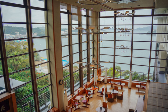 酒店共有三个开放式温泉浴场,分别位于三栋楼的不同楼层,无论身处何处,都可以边欣赏海景边泡汤。虽然是公共开放浴场,但日式温泉非常讲究“干净”二字,包括身体的干净与设备的干净。在温暖的汤泉浸润下,整个人放松下来,徐徐的海风,若隐若现的汽笛声,有韵律的海浪声,带给人全方位的享受。