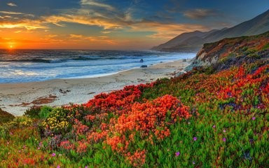 海滩上柔软的白色沙粒和碧绿色的大海相映相衬,景色十分迷人。由于海滩绵延约6公里,尽管游人较多,但不显得拥挤。延绵弯曲的海岸、银白色的幼沙以及平静碧蓝的海水构成了迷人的风景画。