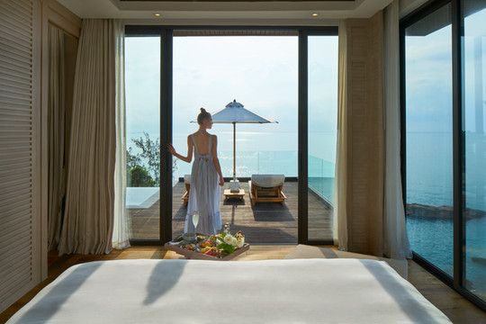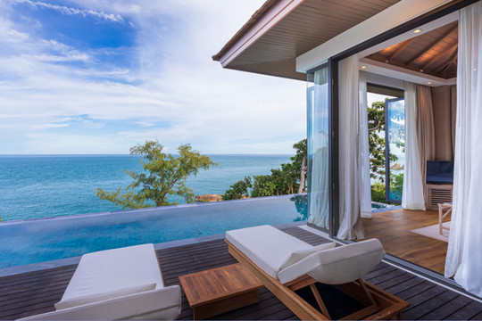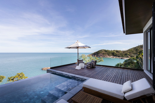 Cape Fahn Hotel酒店中所有房型都为全新的豪华私人泳池别墅,每一幢别墅都被成片的绿色植被包围着,静谧且私密,酒店旁边就是原始海滩,仿佛与大自然融为一体,可尽情将泰国湾的碧蓝海水尽收眼底,独享270度的壮观海景,房间内还提供免费迷你吧及时令水果。