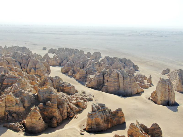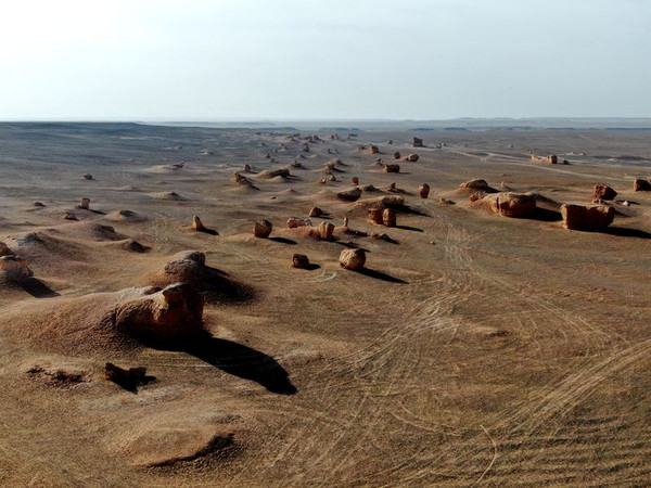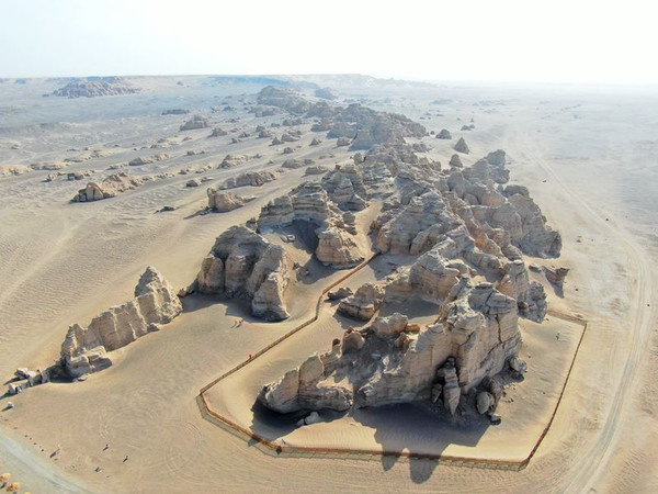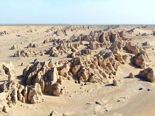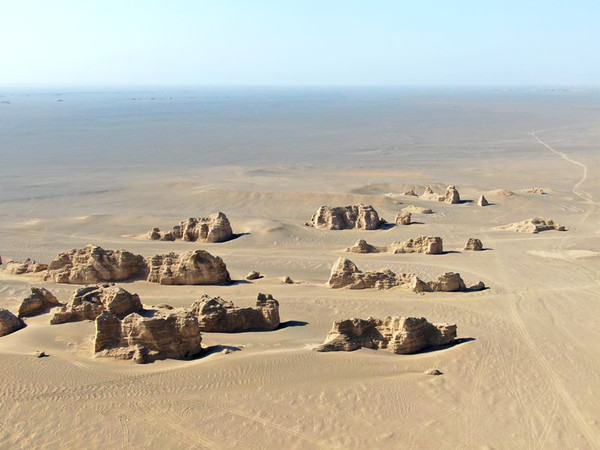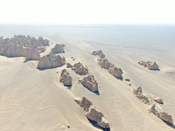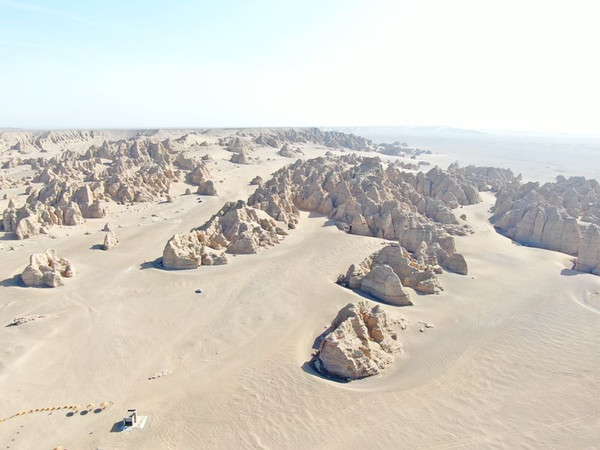 远远望去还真有海市蜃楼的感觉,平坦的瀚海之上似有楼宇林立