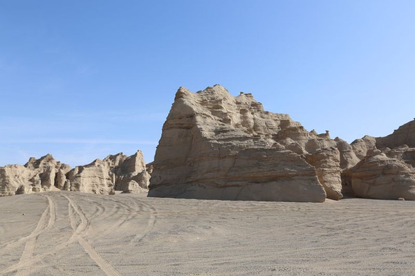 离开金谷满仓景区,沿着沙漠中的车辙,我们去往神女峰。