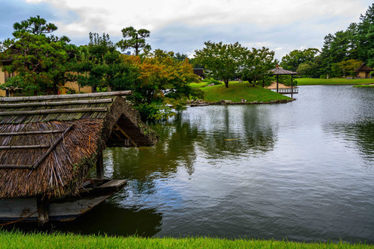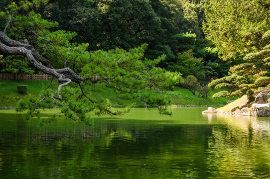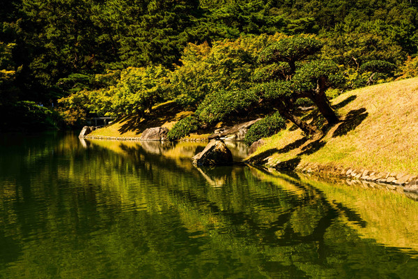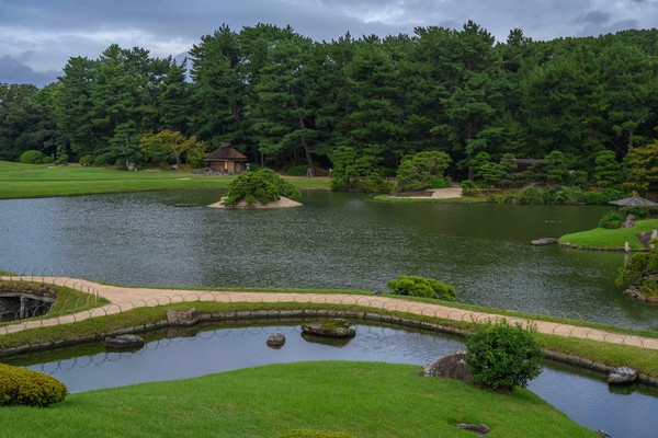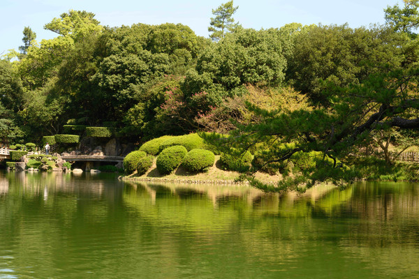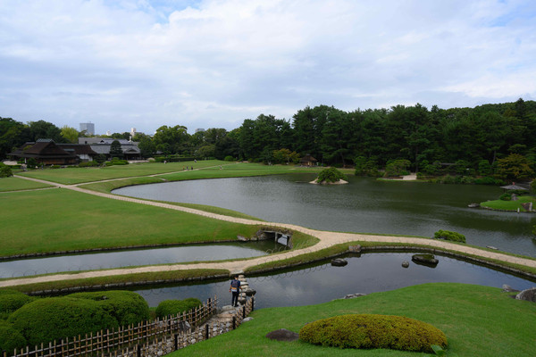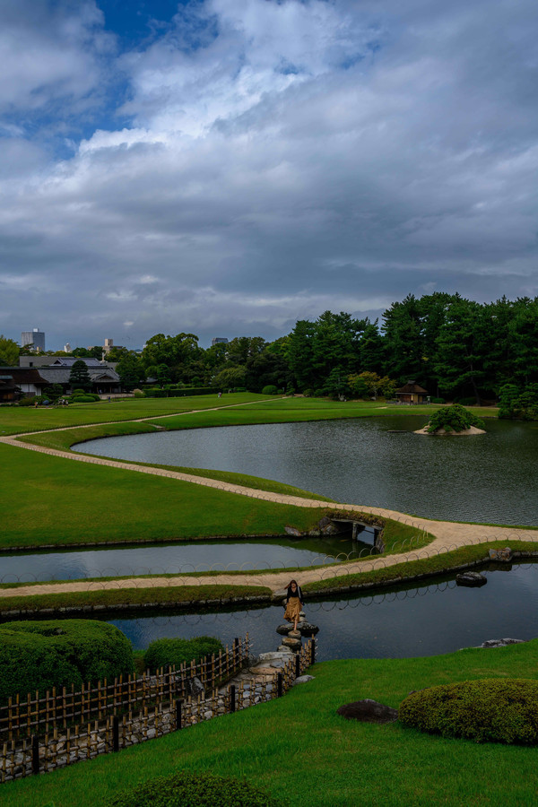 坐拥南北两庭的栗林园与印象里传统日式庭院的精致小巧,委婉曲折不同,不需枯山水的隐喻冥想,占地75公顷六池十三假山的布局,一片宁静,青山苍松,茶屋木桥,流水锦鲤,各自安好。