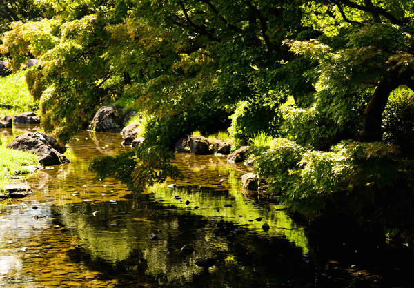 南庭有湖,可放舟穿行,撑船的是一个白人船工,同船的还有一家子澳洲人,虽说“白人相见”,总是有些唏嘘,但可能久居日本,白人船工也已经习惯了日本人的周到但不会太过亲近。