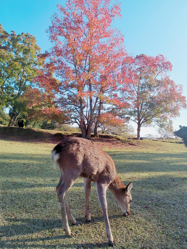 从客服中心出来,沿着池的东侧向北走,按着地图收藏的景点标记,依次兴福寺-奈良国立博物馆-奈良公园-东大寺二月堂-若草山-春日大社,一路上都是小鹿,所以不必挤在入口的地方,拍那几只脏兮兮还不太爱理人的家伙。转了一圈下山回到客服中心那条路,再一直往南走,就是客服阿姨推荐的一些隐藏在民宅里的几个当地特色的民居展示,应该是为推广当地文化所做的一些公益活动。