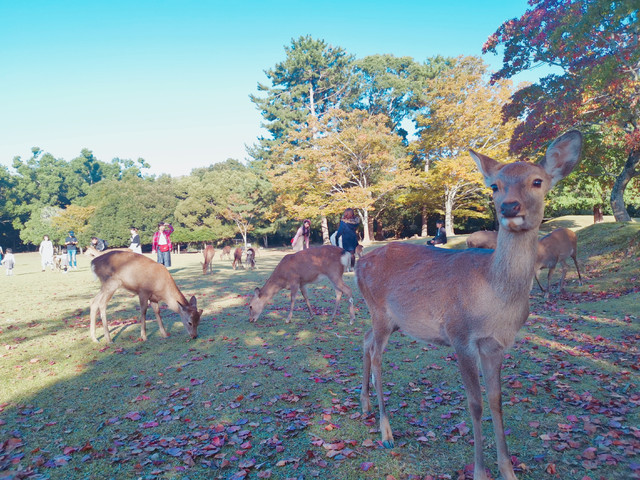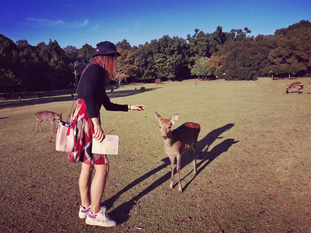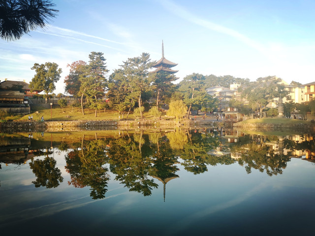 ★宇治饱餐后,在店里逛逛买了点手信就回JR宇治站向奈良小鹿奔去了。奈良站的行李寄存柜都被占满,出来有个客服中心可以寄存,朋友花了1400日元寄了,我想省点,本来想拖着箱子上公园的,后来发现有点困难,抱着试试看的态度,在兴福寺对面的猿伬池的东南角找到一个客服中心,这里是免费寄存的。客服还很nice的建议怎么个路线,并给了一些攻略上没有的当时在附近举办的一些小展览,建议我们逛完回来后,可以去逛逛。
