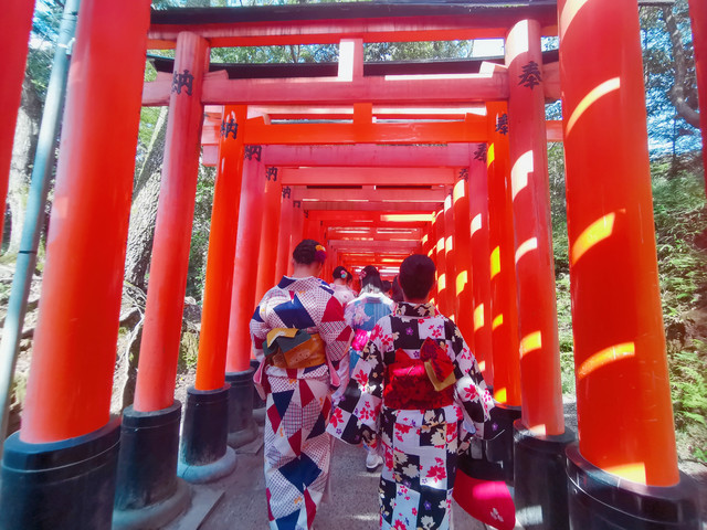 ★伏见稻荷大社,人超级多,根本找不到无人下的镜头。所以建议改个时间,一大早去比较合适。我们原本计划从京都到宇治那天去,因为是同一趟车,会先经过伏见稻荷,但是想想那天还要去奈良,时间有点紧张,就没这么安排。但伏见稻荷大社放在一天的早上是最好的。