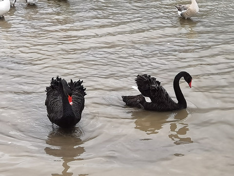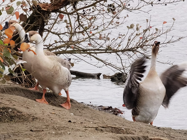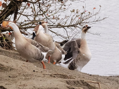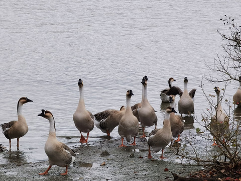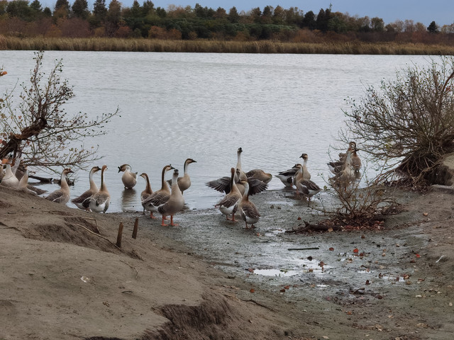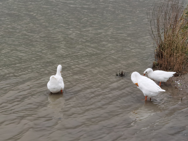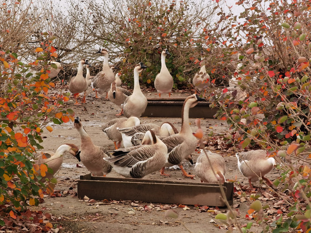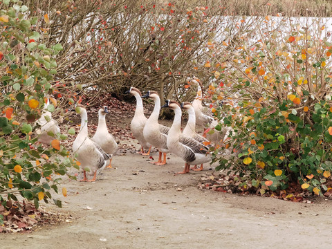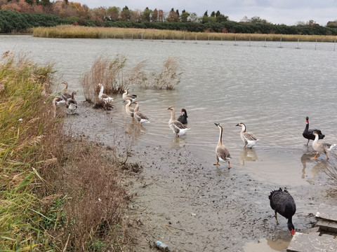 听到其他动物声音了,寻声去找找,哟,这是鸭子还是鹅呀,好多都在觅食