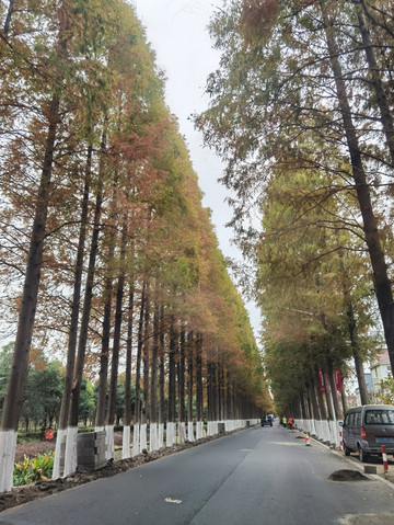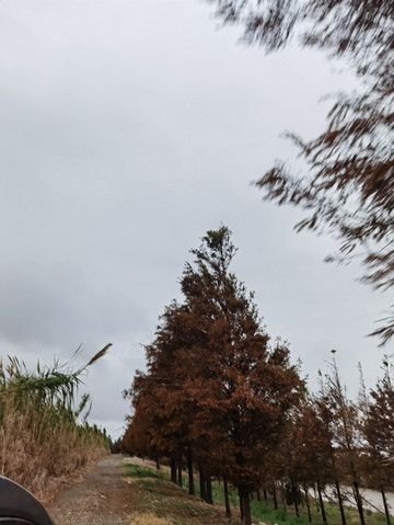 看到景点指示牌了,转弯进去,一片树林继续骑行,风吹的真冷啊