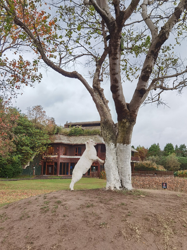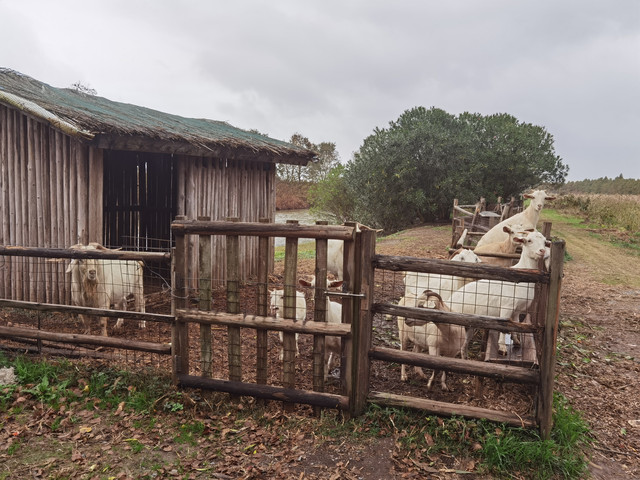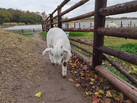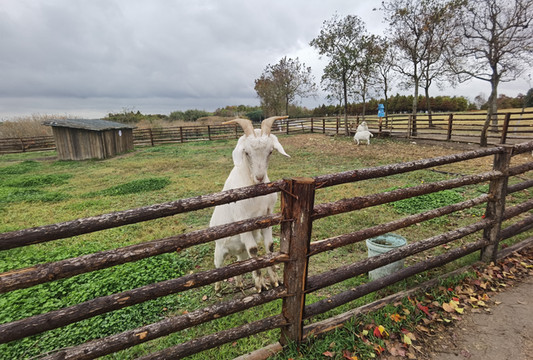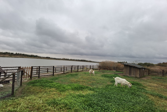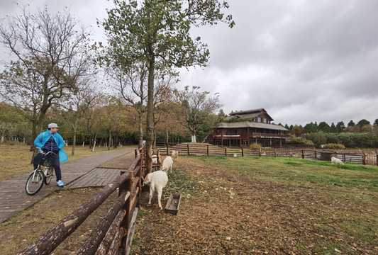 栈道上也能骑行,四周都是芦苇荡,看到羊群了,住宿条件真是好,小羊钻出羊圈来觅食了,还喜欢爬树,太可爱了有没有,但就是不让我们抱呢。