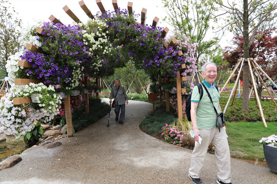 今天主要游览国际展区——A区的友好城市园、B区的冠名企业园及C区的花卉企业园和国内展区,由于园区很大,人流分散,观展体验很好。