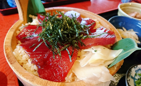 所谓手拌寿司,原本是渔民在渔船上食用的一种食物,后来逐渐流传开来,成为当地的一种美食。做法是,首先将鲣鱼和金枪鱼等生鱼片浸泡在以酱油为底料的调味汁中,然后放在醋饭上,再撒上紫苏和海苔等佐料。这道美食非常适合寿司爱好者享用!