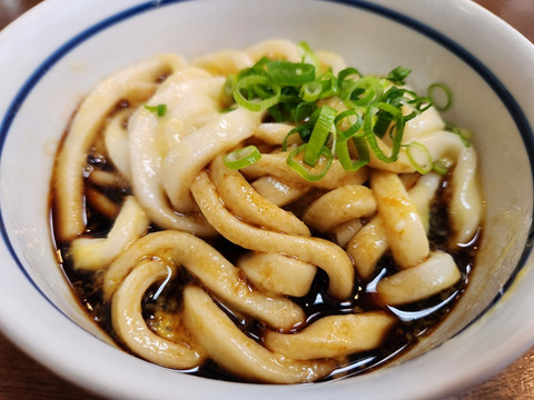 这种乌冬面的特点是面条非常粗软,并配有高汤黑汁(汤汁)。但是它的味道并没有看上去的那么浓郁,吃起来比较清爽。