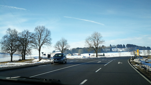 第二天早晨,女主人来送我们的时候,还带来了一些礼品,是她自己制作的食品,她看上去很老,穿着一件裘皮大衣,但人很和善。天空刚下过雪,我们在德国平原上疾驰,来到一片巨大的雪地,雪地里有一个小小的教堂,我们在那里稍作停留。车的后面就是阿尔卑斯山脉,在前往新天鹅堡的途中,我们经常能看到它。我们参观了中天鹅堡和新天鹅堡,在导游的讲解下,了解了路德维希二世的故事和传奇。