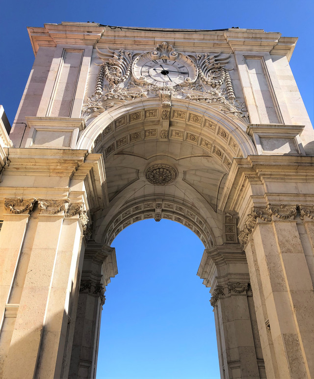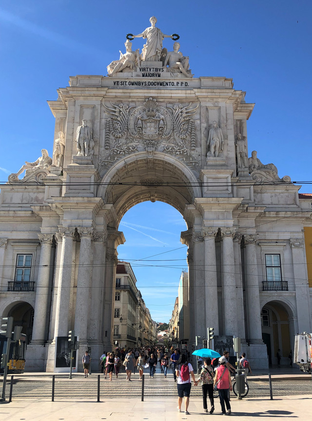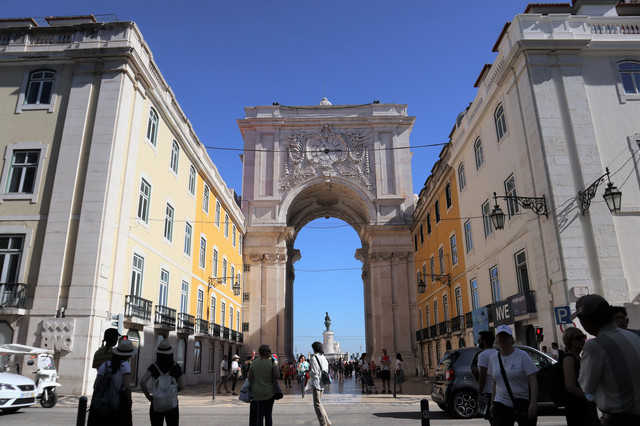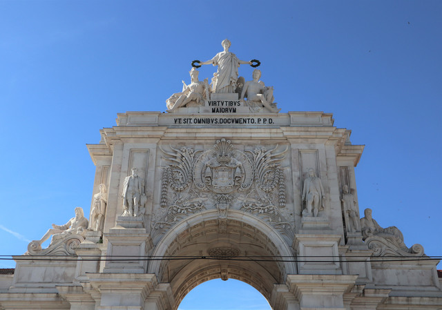 奥古斯塔街凯旋门,也称胜利之门,里斯本的一座重要建筑,为纪念1755年里斯本大地震后的灾后重建。凯旋门由6根11米高的圆柱支撑,上面装饰着葡萄牙历史上的英雄人物雕像,中间是葡萄牙国徽。