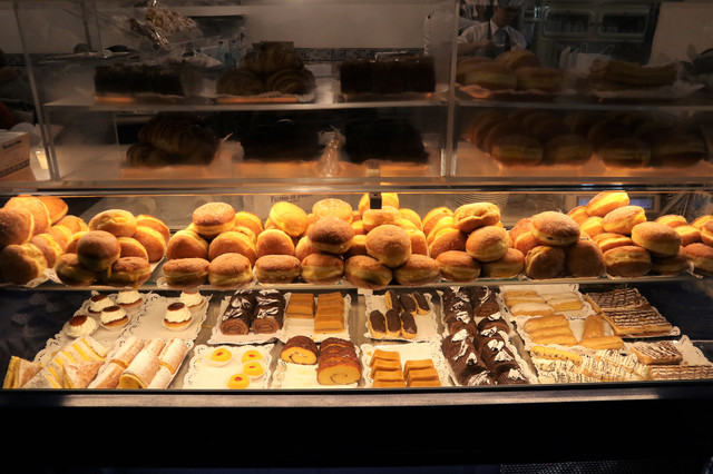 这里不光有蛋挞,还有柜台中陈列的各式甜点,花样繁多,引人垂涎。