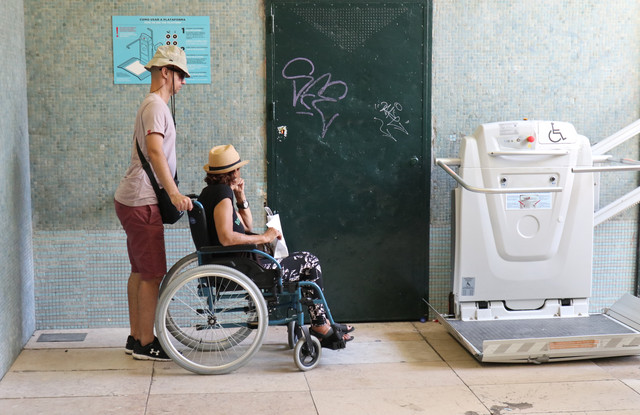 过街地下通道,为残疾人设置的专用电动扶梯,关照入微,令人感动。