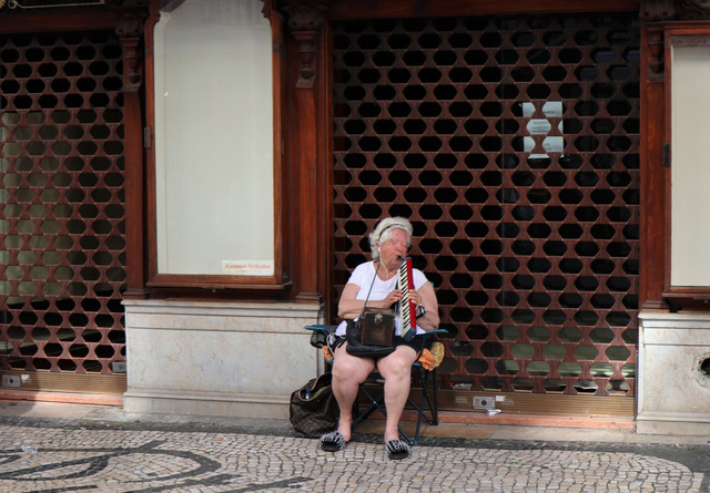 自由大道走到尽头,进入繁华的商业步行街,抑或叫美食一条街。当街摆满了多家餐厅的餐桌椅,近乎首尾相连,老外就喜欢坐在户外,人来人往之处就餐。来到异国他乡旅行,当应入乡随俗,适当体验几回。