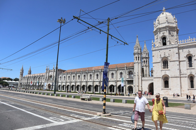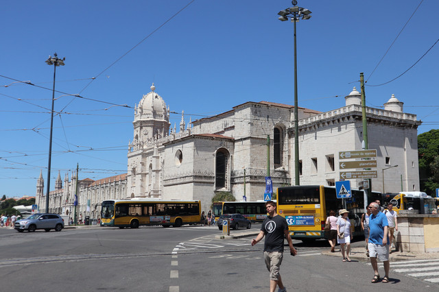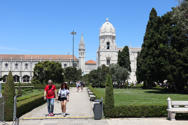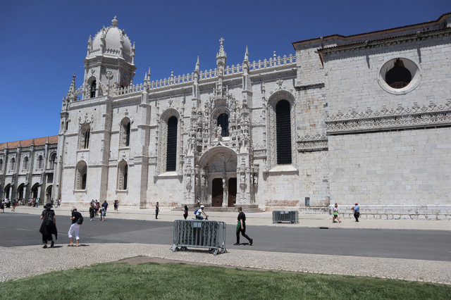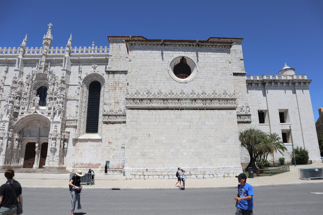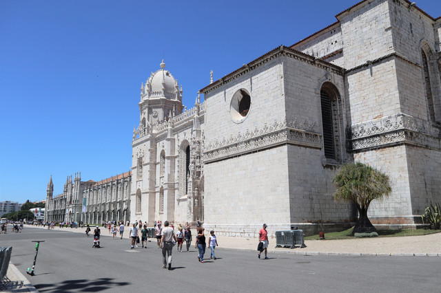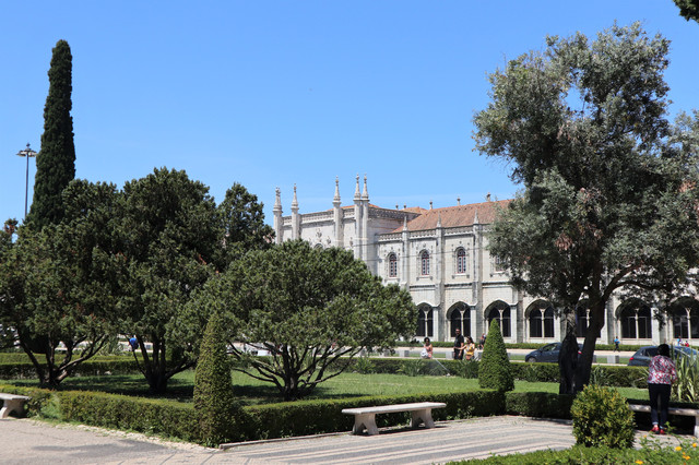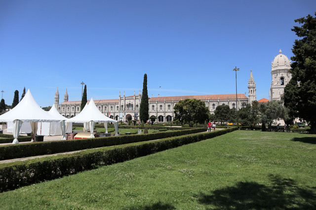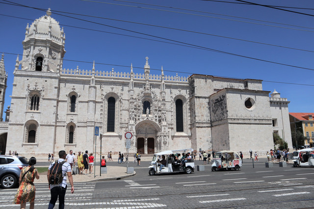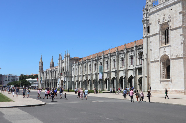 热罗尼莫斯修道院,建于1502年,是一座流行于16世纪初期的曼努埃尔式建筑的典型,气魄宏伟,雕刻华丽。它也是葡萄牙最大的教堂,1983年被列入世界遗产名录。修道院里安放着航海家达伽马的石棺,石棺上刻有航海标记。修道院后院回廊装饰也以航海题材为主,回廊后是漂亮的中庭花园。