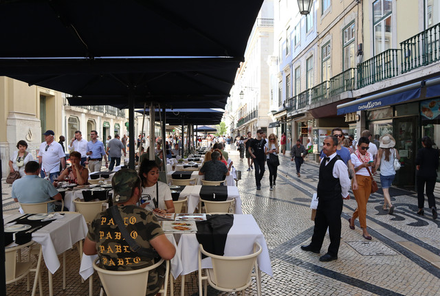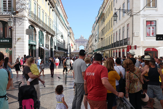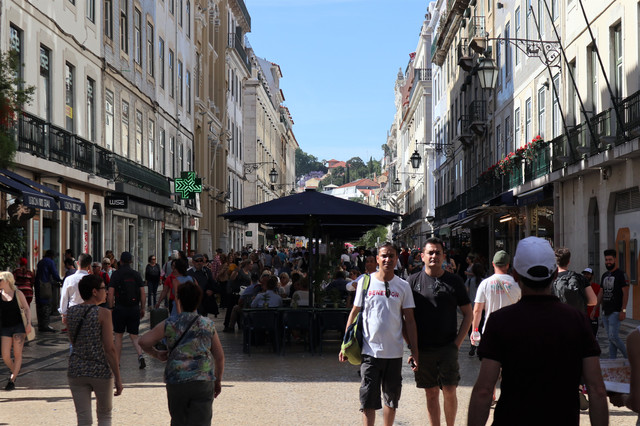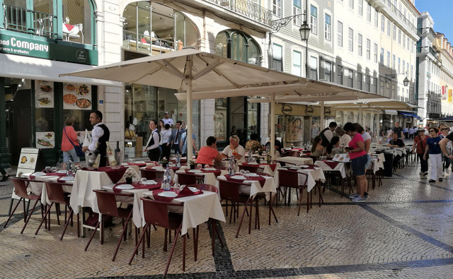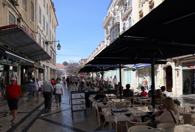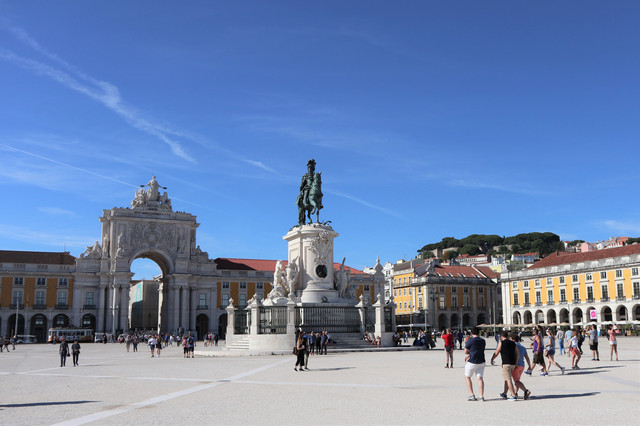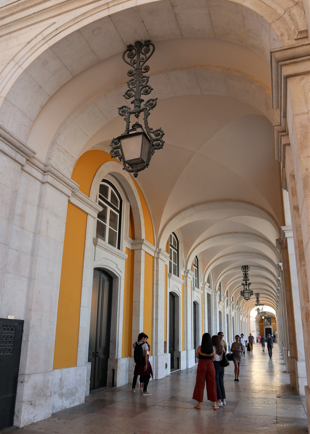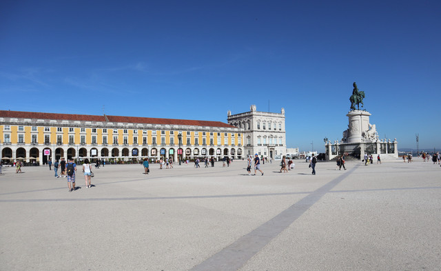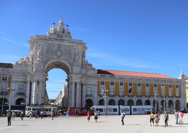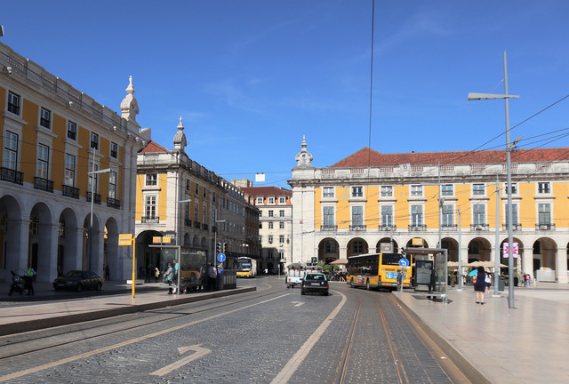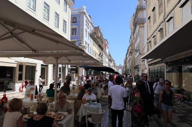 商业广场,被称为“欧洲最漂亮的广场”之一,面向特茹河,伴有长廊的宫殿建筑,井然有序地坐落在广场三面,现在是政府机构。凯旋门后面是与商业广场纵向并行相连的三条大街,是里斯本最古老的闹市区之一,也是当今最繁华的商业中心(即刚刚走过并就餐的步行商业街)。