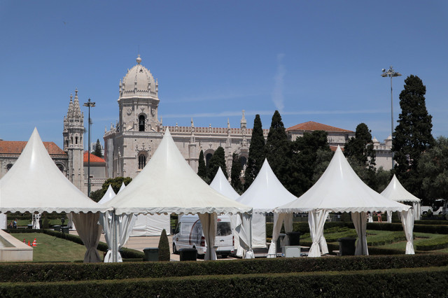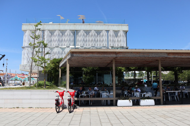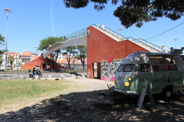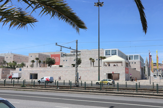 路对面的灰色建筑是贝伦文化中心,现代的建筑和周围的历史建筑呈现出鲜明的对比。它是葡萄牙最大的文化传播中心,长期设有固定的艺术展览,展出有包括毕加索、达利、杜尚等大师的收藏品,还有很多雕塑艺术品。