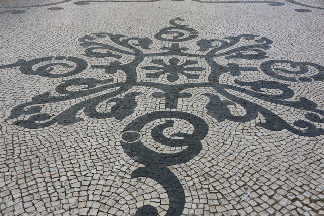 自由大道的步行道路由小石块铺就,白、黑两色组成各式图案。