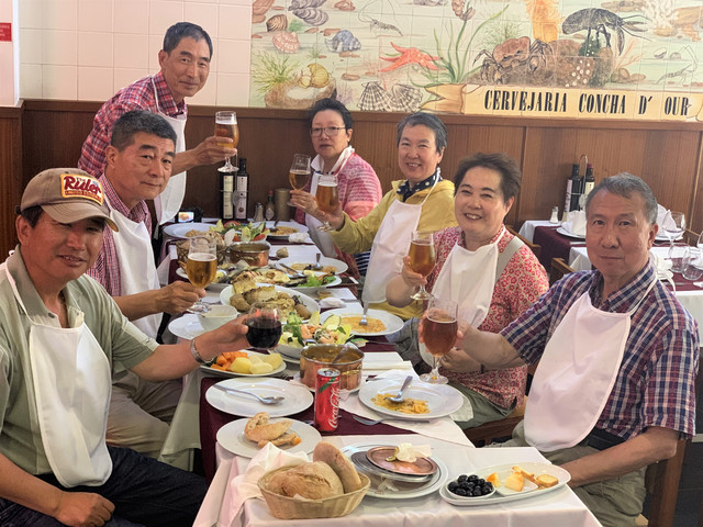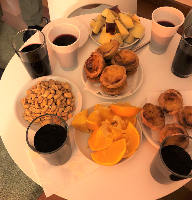 17点才吃完海鲜大餐,休息后本想在酒店附近找家小超市,买些小食品类,转悠半天,无从发现。正好还存有红酒、花生米及百年老店赠送的蛋挞,晚上就在酒店房间聚会小酌,聊一聊一天的趣闻轶事,赞一赞在里斯本度过的美好时光。