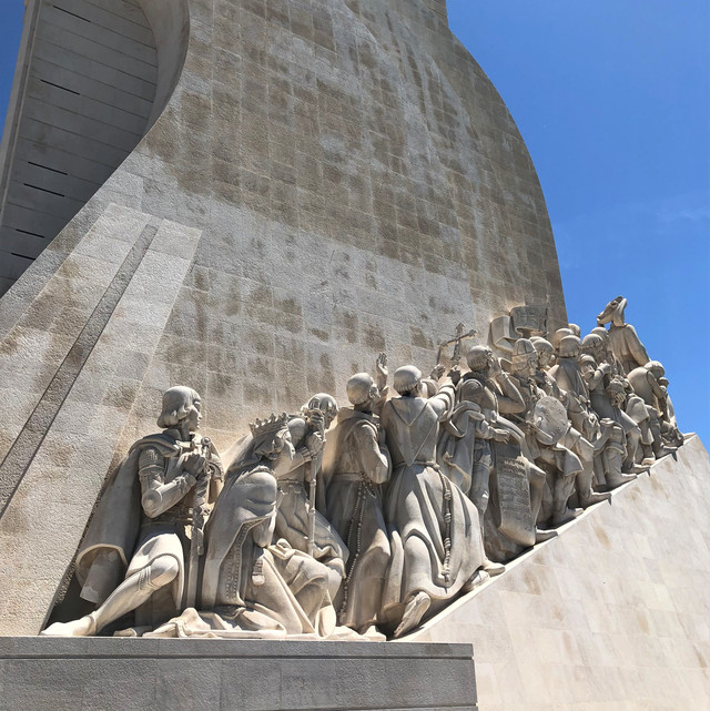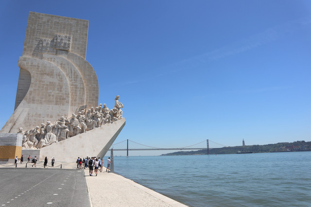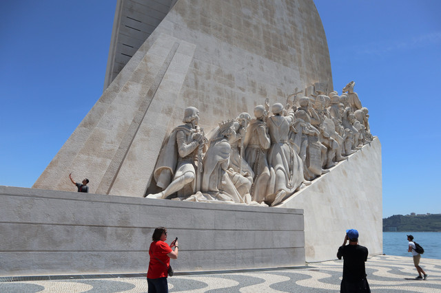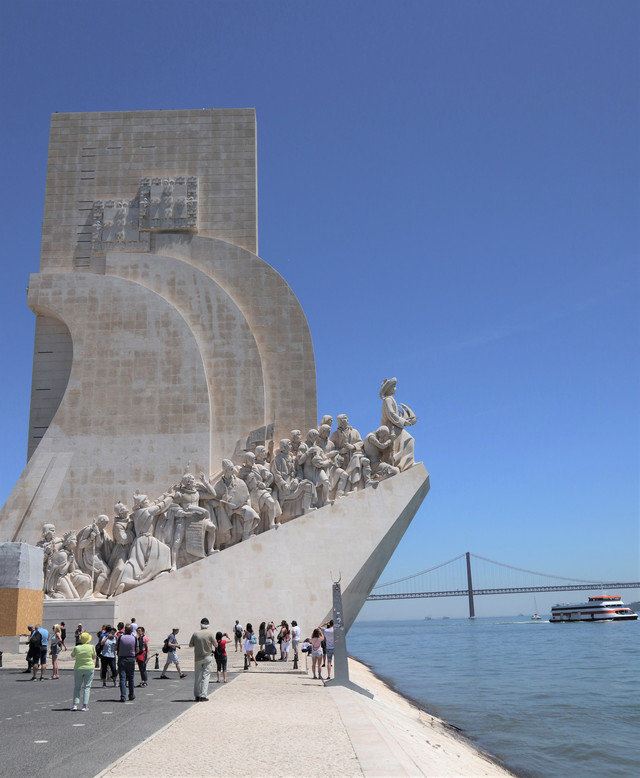 高大宏伟的航海纪念碑矗立在特茹河畔,如同一艘巨大的白色帆船,纪念碑为纪念航海王子亨利逝世500周年而建,基座由一组群雕构成,上面雕刻着数十位葡萄牙航海家和对航海事业有贡献的功臣,其中包括达伽马、佩德罗·卡布拉尔、麦哲伦等,记录着葡萄牙辉煌的航海历史。
