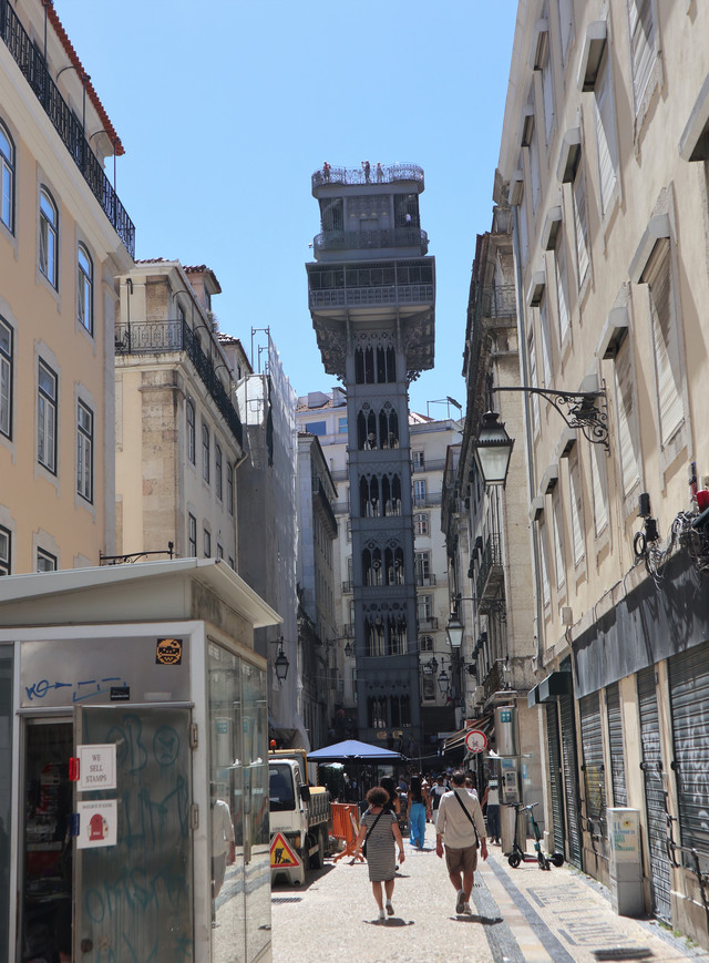 西面的小街里,矗立着圣胡斯塔升降机 ,始建于1900年,完成于1902年,原本使用蒸汽动力,1907年改为使用电力。2002年被评为国家历史古迹。升降机高45米,每层不同的样式,通过螺旋楼梯可达顶层的观景台,是一个欣赏里斯本街景的好去处。