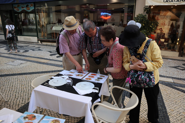 行走在这样的环境中,本觉舒爽适意,理应东瞧西看。但从进入里斯本开始,除了在百年蛋挞店小坐外,已经马不停蹄地游逛了3个多小时,堪称暴走之旅,颇感疲惫,实在是有点迈不动脚步。几度询问导游餐厅还有多远,甚至想就近在路边找一家餐厅。但想了想还是坚持吧,导游选定的餐厅,应该自他的道理。
