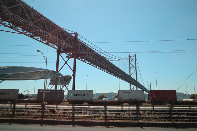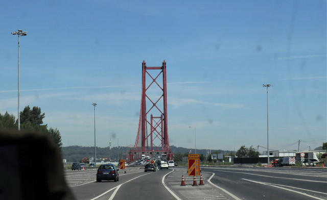 经过4月25日大桥,听起来挺奇怪的名字。大桥始建于1962年11月,为钢结构斜拉式悬索大桥,由建造美国旧金山金门大桥的同一家公司承建,所以二者外观酷似,也被称为金门大桥的姊妹桥。