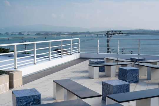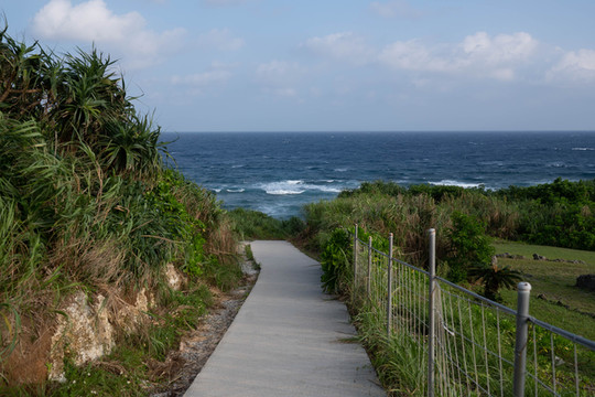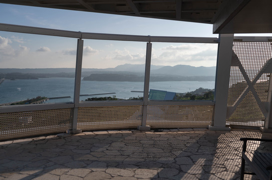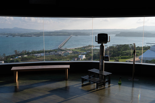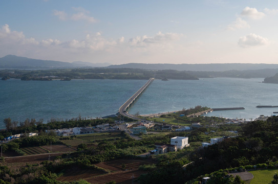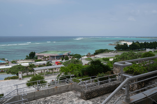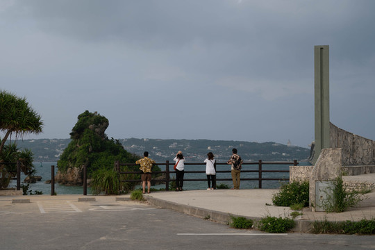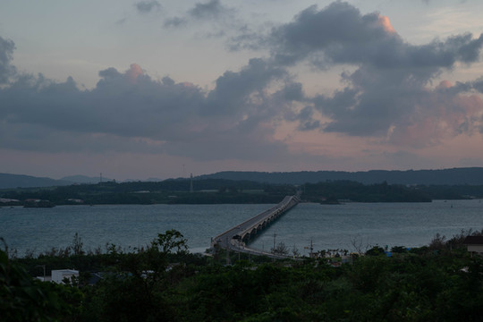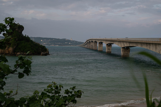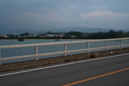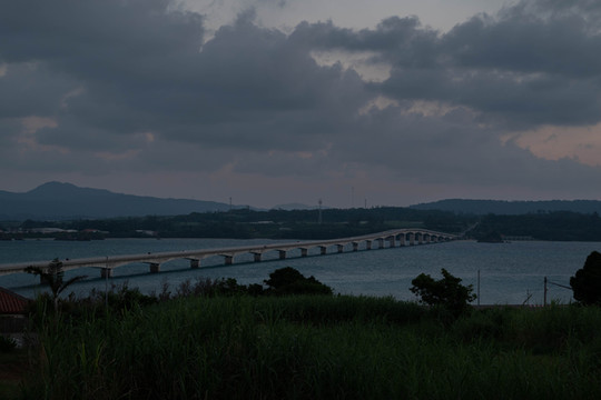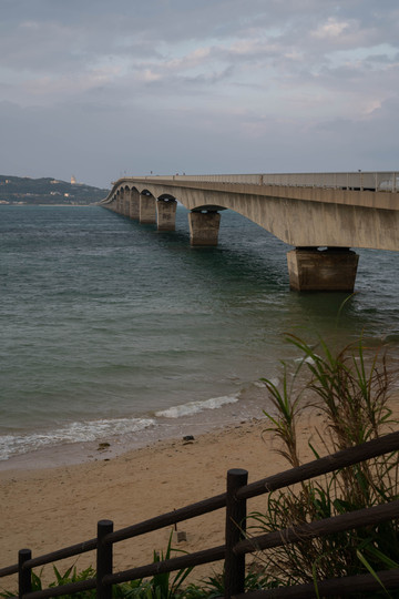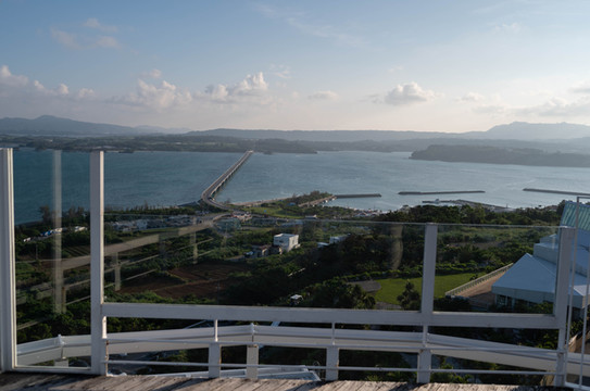 本来的初衷是想来到大桥南端的观景台上拍一张官方同款的明信片级封面照,然而却没想到今天过来的时候观景台的入口是封掉的。反正现在天气也不好了,那就只能在入口旁边的栏杆这里眺望一下前方的古宇利大桥和远方的古宇利岛吧~