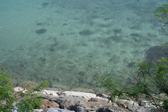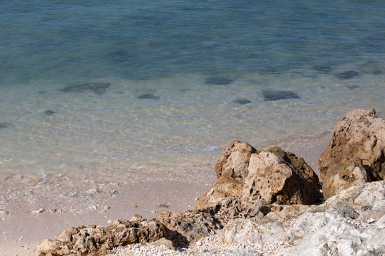 海水非常清澈,水面下的砂石清晰可见。