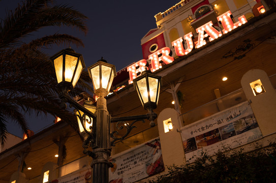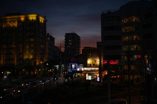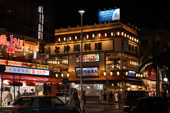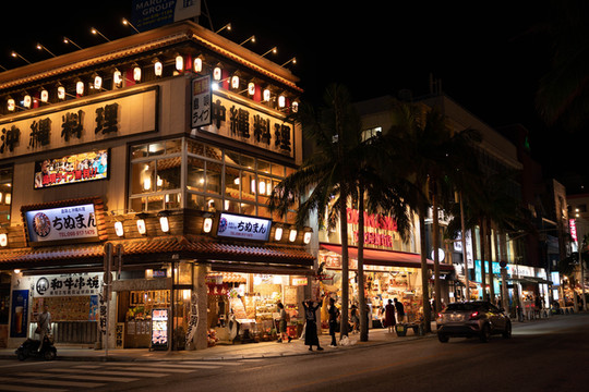 其中,在国际通入口处前方的这家冲绳料理应该算是整条街的夜景颜值担当吧,每次来到这附近的时候,最吸引眼球的建筑就是这一栋。