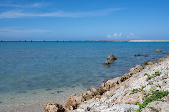 这一次长途跋涉来到古宇利岛,有一半的原因就是因为这座古宇利大桥。看过了网图之后立马心里长草,因为晴空下的古宇利大桥漂亮极了!白色的大桥映在蓝色的海面上,大桥的下面则是白色的沙滩和清澈见底的海水,这个时候心里头就马上会浮现出唯一的一种声音:我要去我要去!