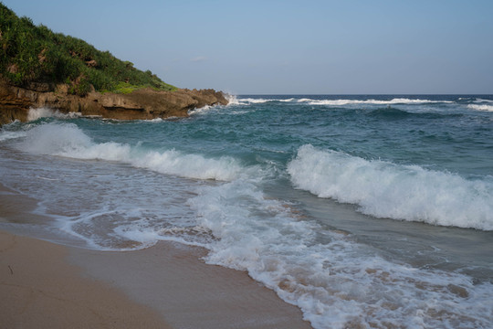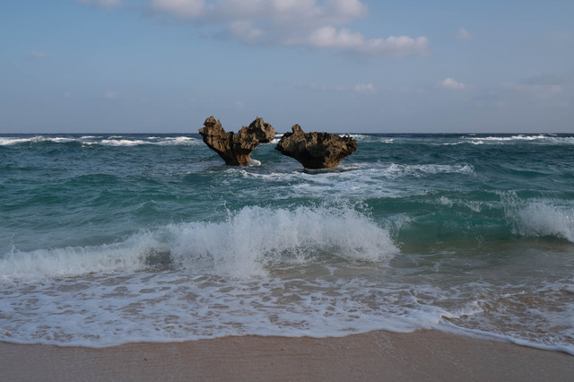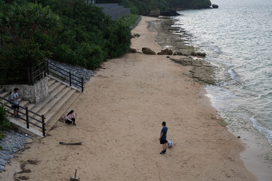 和大桥北岸的古宇利海滩比起来,这片海滩的面积就要小很多了,但这并不会影响游客前来拍照留念。