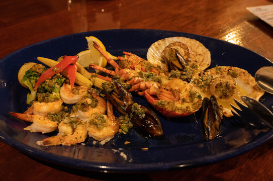 店内的招牌口味“特制蒜香奶油虾拼盘”是人气必点,超级新鲜的虾肉上淋上特制的奶油蒜酱非常美味,除了稍有一些油腻之外其余满分。