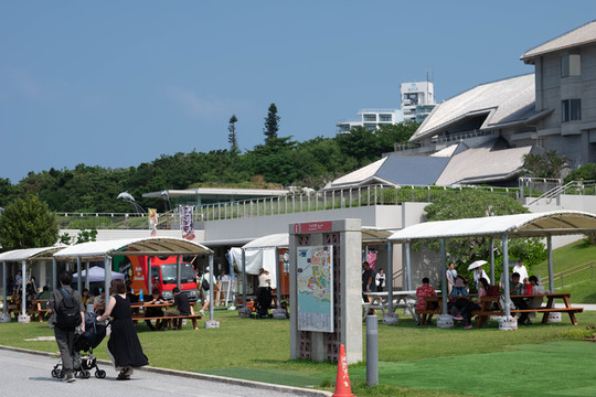 接下来要做的事情就是赶快找一个可以躲雨的地方,所幸古宇利物产中心就在大桥起点的不远处,我便赶紧冲了过去。