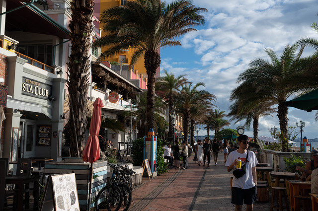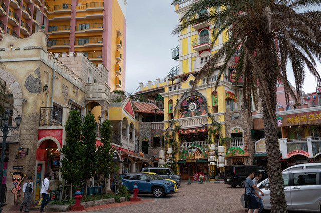 搬运一下度娘的科普:美国村位于那霸东北约20公里处的北谷町,是在原漂亮军驻霓虹基地遗址和临近海岸的基础上进行开发后的综合文化商业区。因为这里保留着大量的漂亮式设施,所以便在几家股东集团的投资改造下摇身一变,成为了一个新晋的网红打卡地,深受当地年轻人的喜爱。